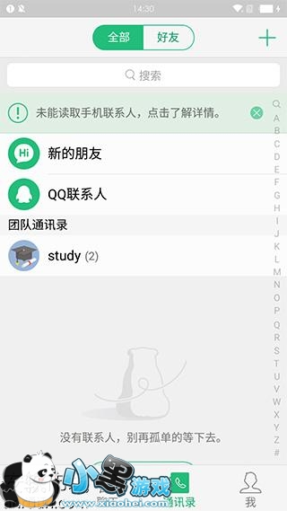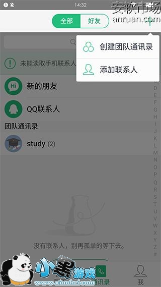 腾讯来电怎么添加好友 来电邀请好友教程 1、首先,下载小黑市场新版的来电,安装打开以后,进入通讯录主界面:
