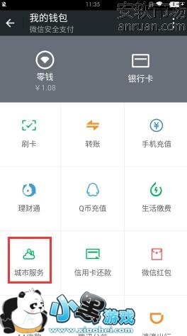 2、直接进入【钱包】服务,然后就会显示城市服务: