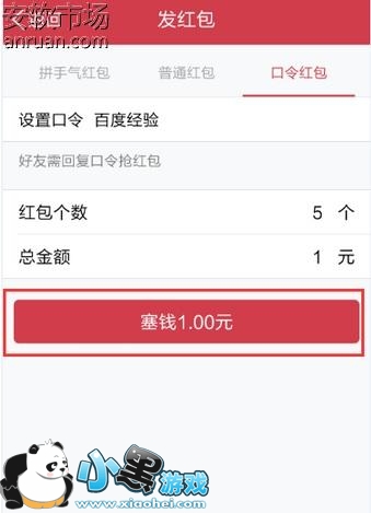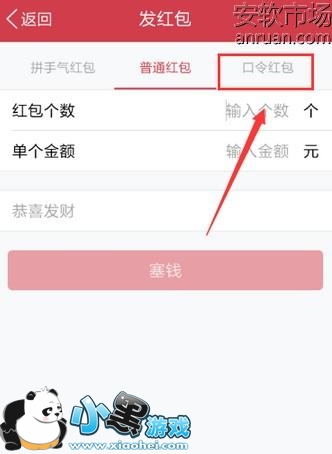 6.然后我们输入口令,然后输入金额和发多少个红包。点击塞钱。