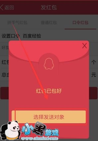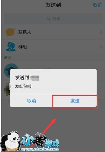 8.然后我们勾选发送对象,这个红包是可以放送到群里面的哟。