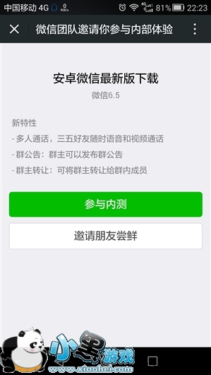 前几日,腾讯放出新了微信内测版,版本号6.5。虽然小黑市场也同时上架了最新的内测版,但是由于很多用户反映没有内测版的使用资格,所以小编在这里需要给大家解释如果正确使用微信内测版。
