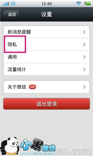 点击设置以后,进入到设置窗口,在设置窗口上面点击“隐私”,如图:
