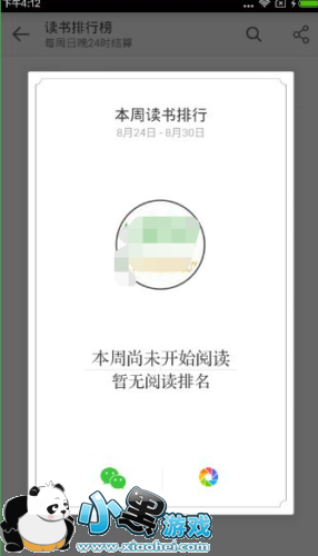 3、读书排行榜的右上角分享按钮可以看到本周读书排行的界面,直接分享到朋友圈,估计小伙伴们一起看书吧。