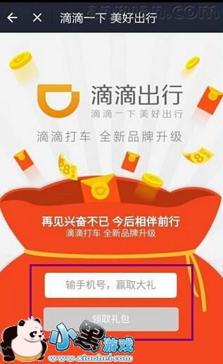 3、最后,输入注册的滴滴的手机号码就可以领红包啦!