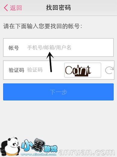3、接下来开始进行找回密码的操作,输入你的百度账号,然后输入相应的验证码,之后点击下一步选项。