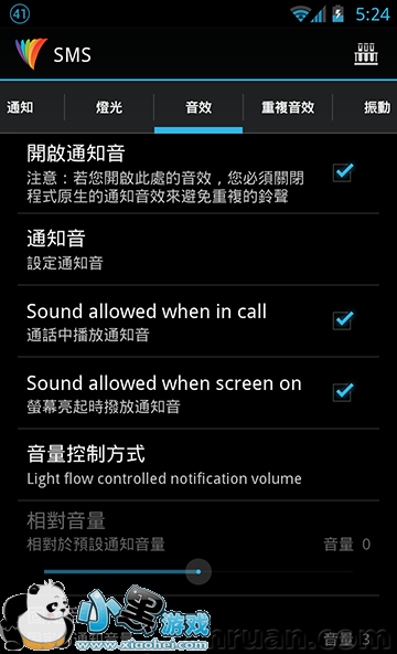 软件可以让你为不同的通知设置独立铃音,设置与Led灯不同的协调方式。