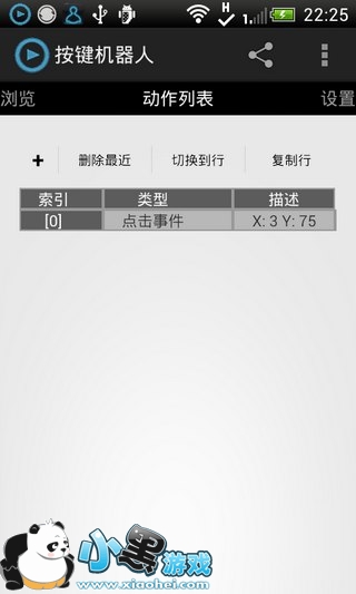 动作列表是为了记录我们全部的操作,看看是否是自己的想要达到的效果,当然也可以增加和删除事件。左上角的加号就可以添加上面对应的事件了, 坐标的话,大家自己把握好,不人性化。