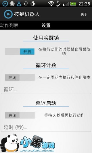 打按键机器人以后,我们就会发现屏幕录制操作设置,第一个选项是保证屏幕录制操作过程中不出现锁屏等现象,而循环和延迟就是控制操作要执行的次数和等待的时间。