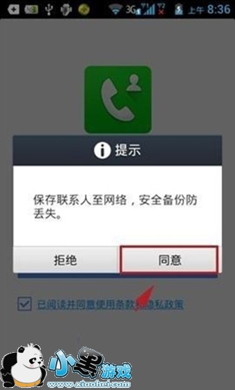 3、微信电话本会提示你是否保存联系人至网络,安全备份防丢失,点击同意。