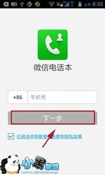 2、打开微信电话本后输入你的手机号,然后点击下一步。
