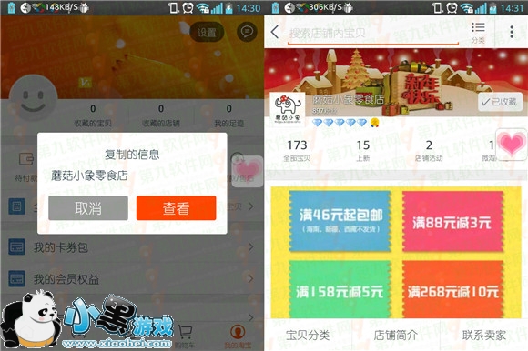 打开手机淘宝后会自动弹出复制的信息点击“查看”即可进入店铺商品页面。非常方便。