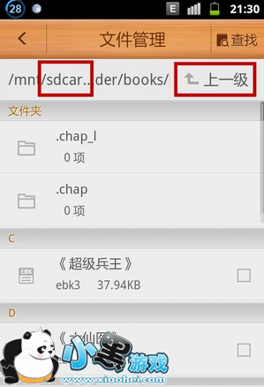 3、在文件夹中找到你的书籍,也可以返回上级,直到sdcard,在总目录中找到你的书籍,在你需要的书籍后面的框框按一下,打勾后,按下面的 加入书架
