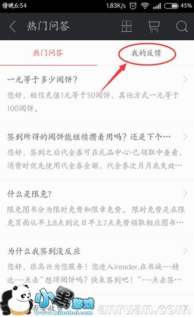 4、进入“问题反馈”页面之后,会有许多热门问答,可以看一下。我们需要的是点击右边的“我的反馈”。
