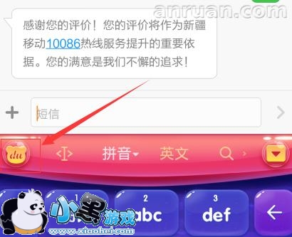 2、在短信界面,输入法弹出来以后,选择百度的小度logo进入du的设置界面