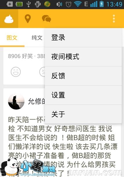 1、在小黑市场下载糗事百科客户端,下载安装好以后,打开糗事百科,进入糗事百科主界面后找到右上角的设置按妞,点击登录。