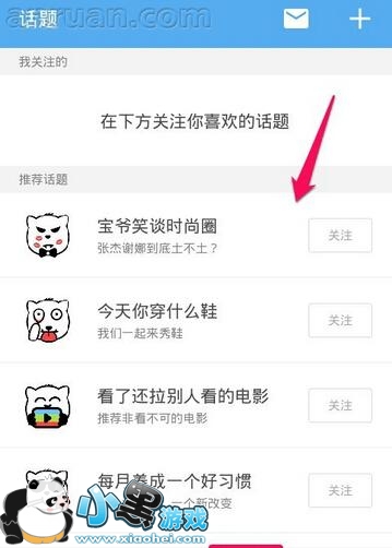 5、选择zaker的话题选项,我们可以选择关注自己喜欢的话题。
