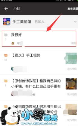 6、如果想看自己发布的内容是否成功,返回到小组界面,可以在最新话题中找到你刚才发布的话题。