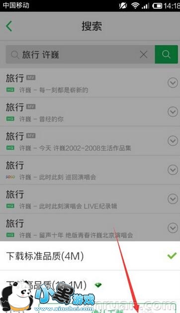 3、点击下载按钮后也有相应的提示,如果你是绿钻用户可以下载高品质的歌曲,同时也意味着占用手机内存也变大了,一般我们选择标准品质的音乐下载。