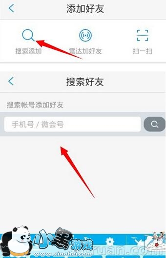 2、点击添加好友这个功能后会进入一个新界面,有三个方法让你去添加好友,第一种是直接添加好友手机号,第二种是搜索雷达搜索附近好友,第三种是扫描好友微会会号二维码,这里我们选择的是通过搜索添加好友,搜索好友的手机号或者微会即可。