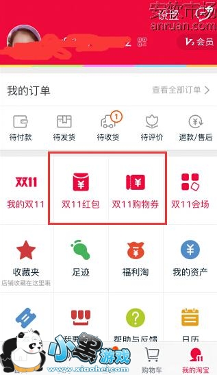 2、选择【我的淘宝】进入,就能够看到双11的红包和购物券,其中双11红包是在双11当天淘宝全场通用,而购物券是在天猫商店才能使用。