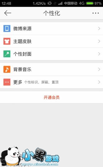 3、在个性化设置界面中,里面有一些功能就是微博提供给用户的人性化服务了,包括设置背景音乐,找到点击背景音乐这个选项,点击“背景音乐”进入,如下图所示。