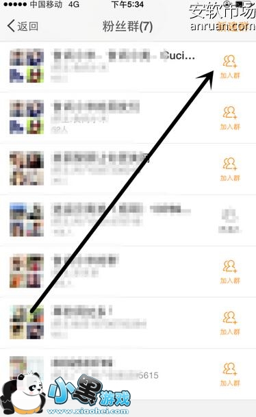 4、这时候会出现一个一个相应的群列表给你选择,选择一个你最想加入的群加入。