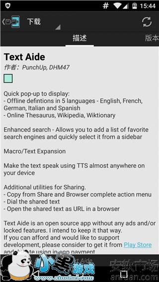Dict Aide 是一款词典应用,不需要 Xposed 框架但可以与 Text Aide 联动。那么第二步我们需要设置应用并下载词库。Dict Aide 兼容 Stardict(星际译王)词库,点击「Stardict 词库」即可找到包括汉英互译、汉日互译、法语、德语在内的海量词库文件,完全可以替代有道词典、金山词霸,并且广告可以屏蔽,没有捆绑推广等流氓行为。