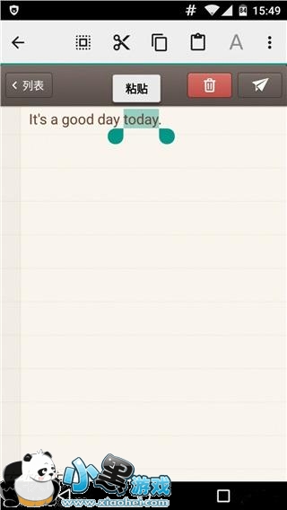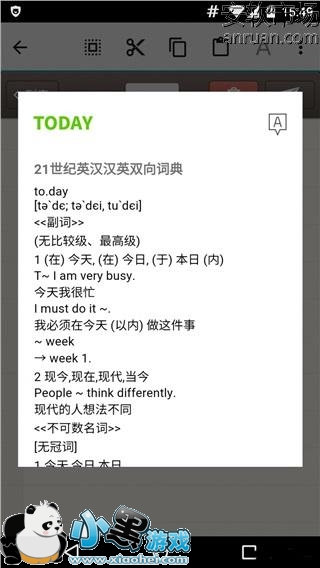 回到阅读器或编辑器,我们长按某一单词,在顶部弹出的操作栏中可以看到新增加了一个灰色的「A」按钮,它便是划词翻译按钮,点击即可弹出 Text Aide 的翻译窗口。