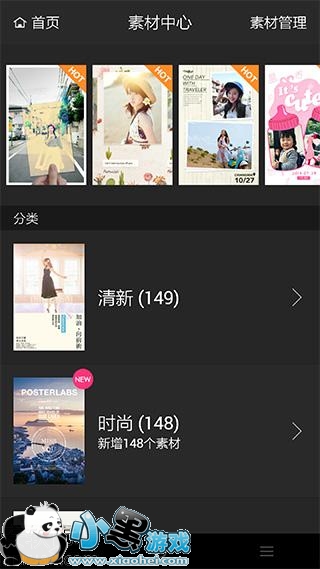 海报工厂如何制作高大上的海报 海报工厂制作照片教程 1、首先,下载小黑市场海报工厂,安装打开以后,主界面点击【素材中心】
