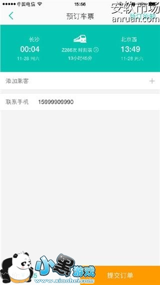 5.最后确认好车票信息,提交订单即可。