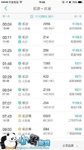 3.选择车次