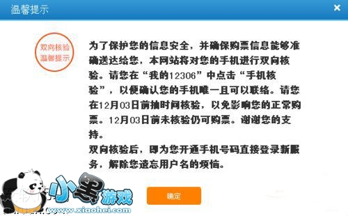 临近春节了,各位应该也都忙着开始准备抢火车票了。不过有一部分同学应该已经发现,之前使用一直正常的12306账号在登陆之后会提示需要双向验证,否则不能购票。那么今天小黑小编就为大家介绍一下12306账号如何通过双向验证吧。其实下面两种方法都可以。