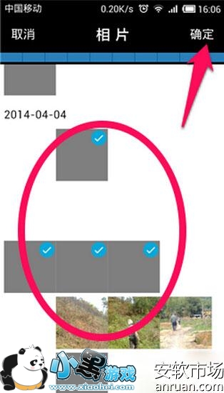3、在下图中红圈标识出来的位置自己需要添加制作视频的照片,选好打勾后,再按上面的确定。
