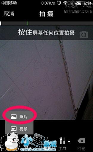 2、进入后点击左下角的菜单栏中的本地功能,然后选择照片(如不需要照片制作视频,可以直接按住屏幕任何位置进行拍摄,后续步骤基本一样)。
