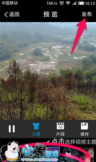 5、转码完成了,在这里进行预览视频,添加主题等,没有问题了就可以点击右上角的发布按钮了。