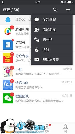 新版微信怎么转账 微信多种转账方式分享 首先,下载小黑市场新版的微信,安装打开以后,进入主界面: