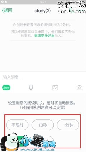 2、团队默认的发消息3分钟以后自动销毁,我们也可以根据自己的需要更改: