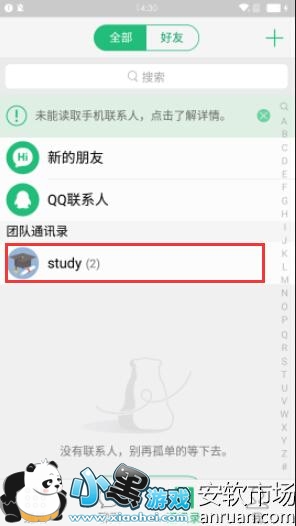 腾讯来电团队功能介绍 来电团队通讯录使用教程 1、首先,下载小黑市场新版的新版来电,在【聊天】界面和【通讯录】都可以看到自己所在的团队: