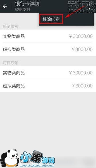 3、最后点击右上角的目录,选择【解除绑定】,输入微信支付密码即可完成。