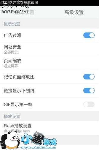 4、进入到高级设置功能界面后,你可以看到一个广告过滤的功能,点击右边的小圆点开启,开启成功后,小圆点会呈现成蓝色状态,这时候就表示成功设置这个广告过滤了。