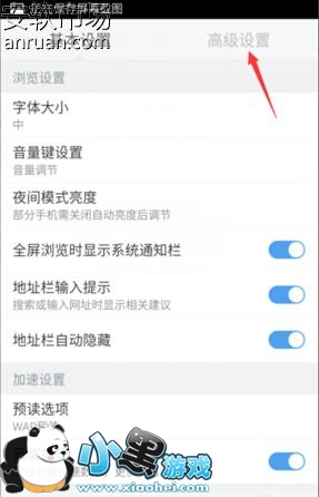 3、点击进入设置界面后,还不是我们需要的,还需要找到那个高级设置的功能,点击高级设置功能进入,如下图。