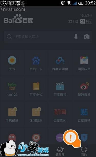 1、打开手机百度浏览器,进入主界面后,找到“我的”这个功能选项,点击进入。