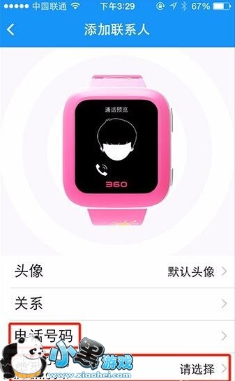 3、设置头像和电话:在电话号码那个功能选项中输入电话号码(如果是添加手表好友,号码必须是手表内的号码)。然后在360儿童卫士的联系人设置好联系人可以操作的类型。