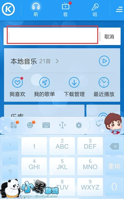 手机酷狗音乐如何下载音乐 手机酷狗怎么下载伴奏 1、首先,下载小黑市场新版的手机酷狗音乐,在主界面点击搜索栏,输入想要查找的内容:
