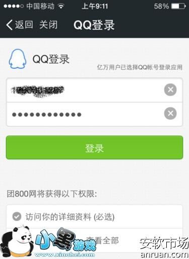 3、下面以QQ帐号登录为例,输入你的帐号和密码点击登录即可。
