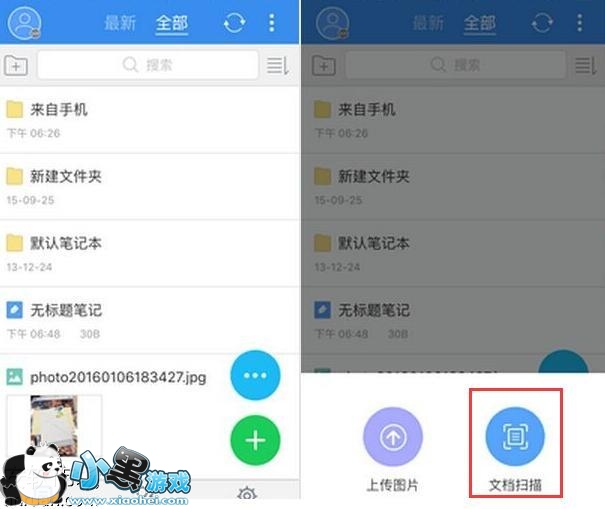 有道云笔记智能扫描功能使用教程 1、首先,下载小黑市场新版的有道云笔记,打开有道云笔记以后,你会发现新版右下角多了一个+号,点击加号就会出现两个新功能:
