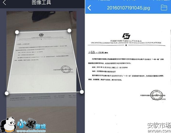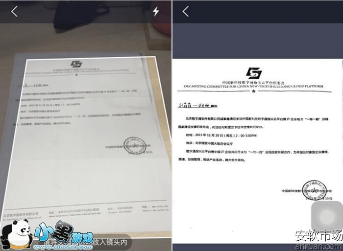 2、我们选择【文档扫描】,进入文件扫描界面之后,我们会发现取景窗口会自动检测边缘角,并在最后成片时对照片进行修正,最后呈现出的是一张正常规格的平面文件,效果如图所示: