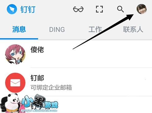 1、打开钉钉客户端,进入钉钉主界面,然后在主界面右上角的位置点击自己的个人头像,如下图,不过这里小编要提醒各位的是,如果你之前没有收到红包,大部分原因是因为你没有绑定支付宝帐号。