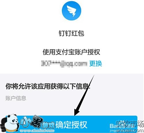 5、一般情况下会自动检测手机上已登录的支付宝帐号,如果不是这个支付宝帐号点击“更改”选择为自己的帐号。