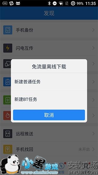 2、在发现里找到【离线下载】,点击以后选择【新建BT任务】: